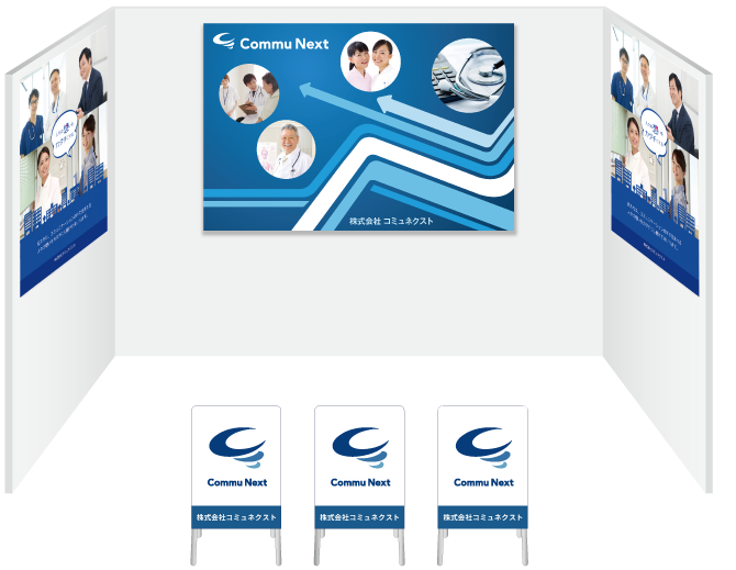 「コの字ブース」で大活躍。両サイドの壁面でアピール可能です。